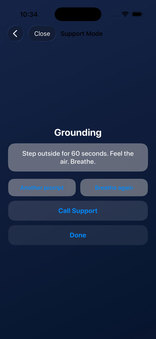 Anchor — Sobriety & Crisis Grounding AppSwiftUI-built sobriety support app designed for high-risk moments. Includes guided breathing, grounding prompts, and one-tap crisis support access.Tech: