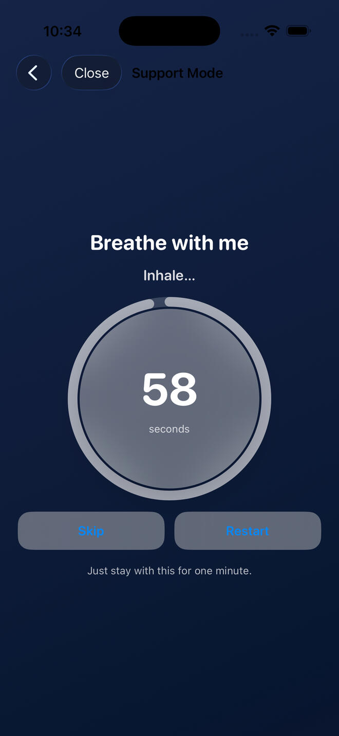 • Guided breathing & habit tracking